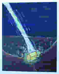 The dark background of the night sky only adds to the drama of the moment the holy spirit comes upon Mary. Although in my painting the Holy Spirit is depicted as a massive thunderbolt with almost cosmic proportions. As if this object was other worldly, in fact the Holy spirit is clearly from heaven. Heaven is not only other worldly but in a sense from another dimension.
